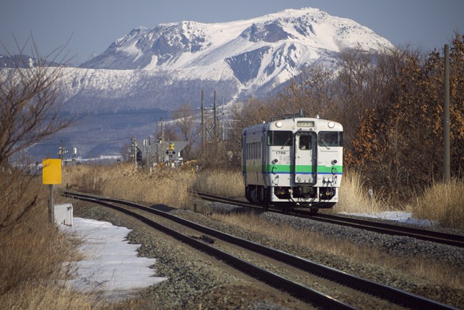 この辺りの火山群がくっきり見えるのは嬉しい限り。まずは有珠山バックに40系。