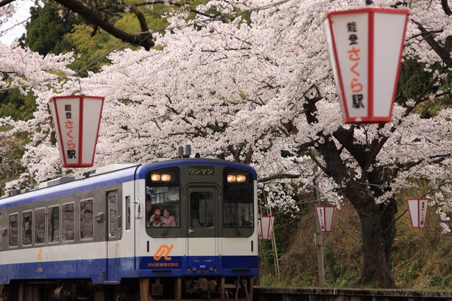 別名、能登さくら駅。せっかくなので夜桜まで粘ろうかな。