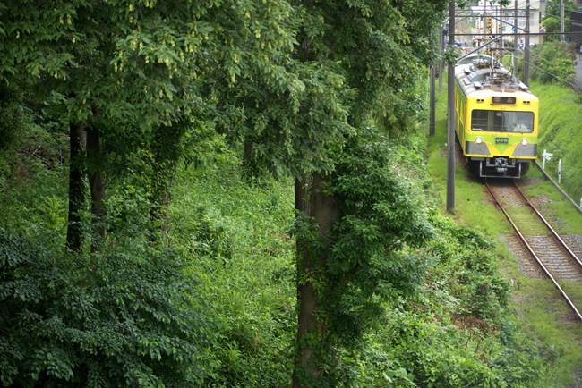 一瞬の林間風景。すっかり夏の緑です。元西武700系、頑張ってます。