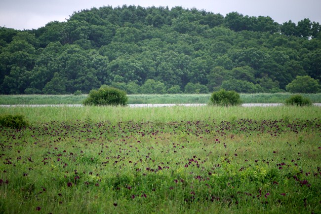 夏の原生花園辺りはどんな雰囲気なのか。今回の旅の楽しみの1つでしたが、濤佛湖あたりの湿地は、一面ヒオウギアヤメの紫!