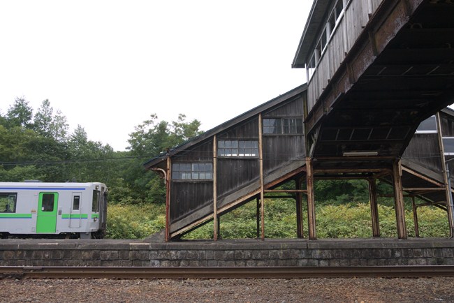 小沢駅。跨線橋は往時のままです。かつてここは始発だった岩内線。何度か乗りました。