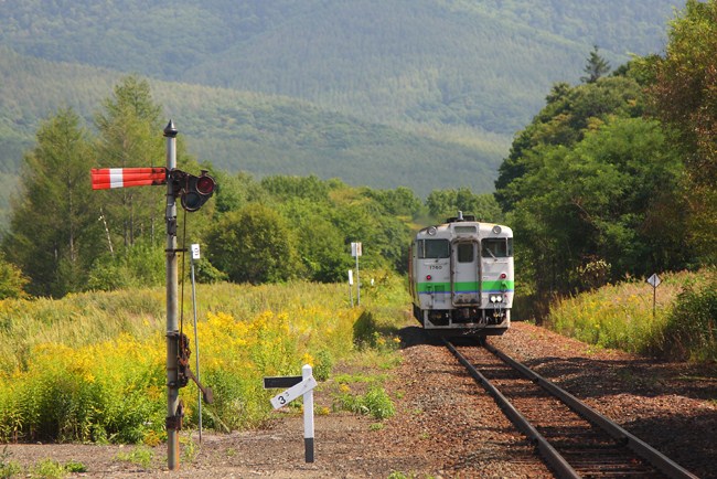 残念なことに、2連で後方はJR北海道色。それでも、長閑ないいシーンです。