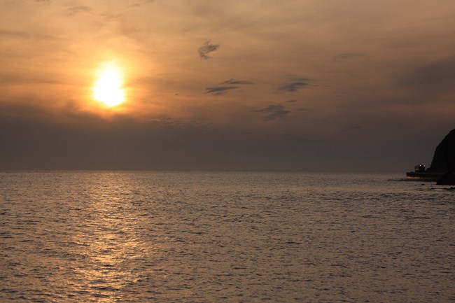 天気は大きく崩れる方向です。だんだんと雲が多くなってきました。この日最後の日差しが海を照らします。