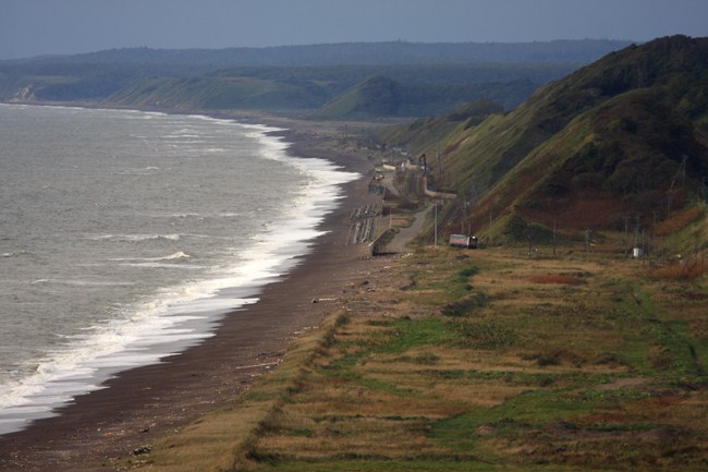 霧なき音別海岸の朝、すっきりと見通せます。珍しくキハ54がやってきました。