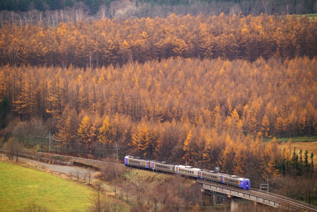 落葉松は北海道の晩秋の象徴。5年前、同じ季節に訪ねた富良野線での感動が蘇りました。