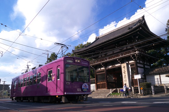 晴れてきました。広隆寺前。京らしい、沿線随一の撮影ポイントらしいです。