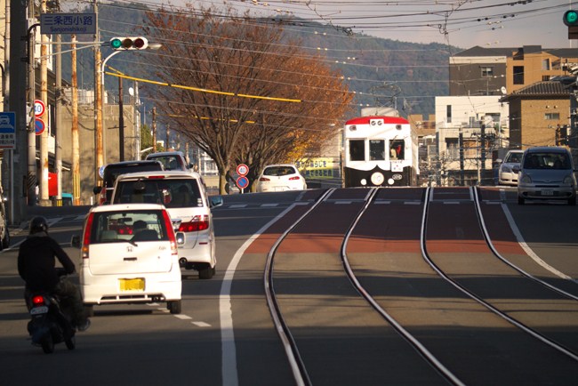 再び、山ノ内で下車。師走の西日がいい感じ。