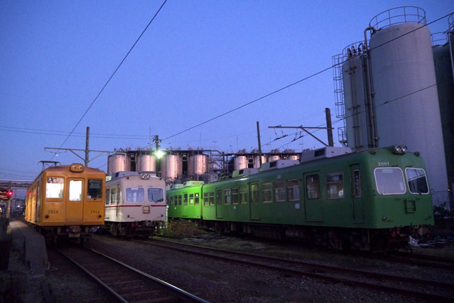 まだ、空に色が残る時間帯に。車両基地のある仲ノ町