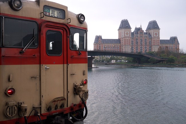 大村線は、現在でも国鉄色キハ66・2編成が通常運用に入っています。さて、入り江にかかった橋を渡り、ハウステンボスに入園。本日はここで泊ります。