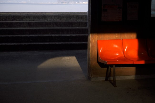 そして、翌朝。始発列車で再び海辺のホームの駅へ。