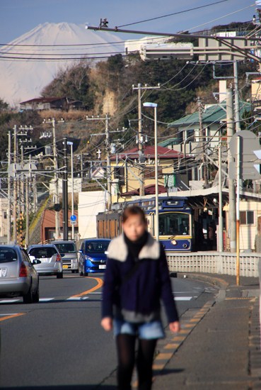 七里ヶ浜方面に歩くと、富士山が見えてきました。