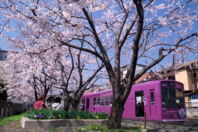 桜のトンネルが満開であるのを確認し、終点までロケハン。ここ龍安寺駅の桜が素晴らしかったので下車しました。