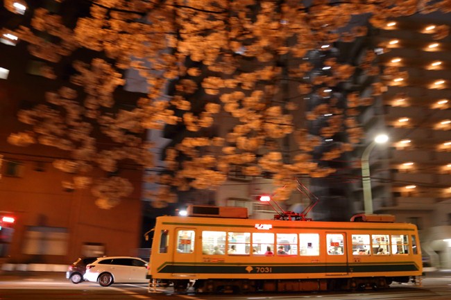 花びら入りの、都電流し。本日の狙いです。桜花びらと分かる程度にソフトに流します。
