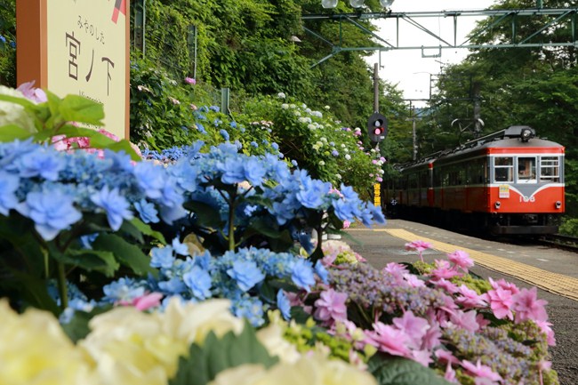 再び、宮ノ下。ホームの紫陽花が美しい!