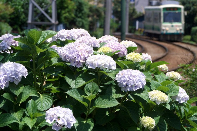 西ヶ原四丁目電停近くの紫陽花。 ポジション最高、色づきイマイチ