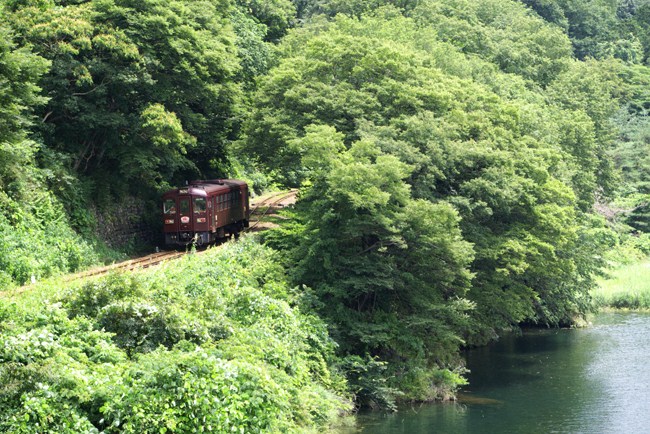 目にも心にも優しい、夏の緑。吸い込まれるように単行DCは緑のトンネルへ。