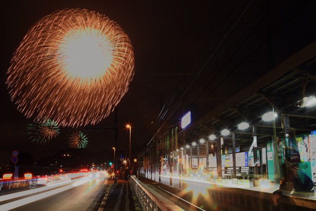 鎌倉高校前駅付近から(多重露光)。 う〜ん、なかなか難しいですね。