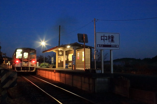 約10分後、那珂湊で交換した列車が中根に到着。毎日繰り返される日常光景ですが、私にとっては夜明け前の貴重なシーンでした。