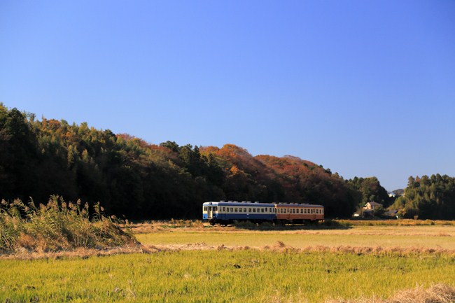 日中は、雲ひとつない晩秋の空の下、キハ205+222が登場です。