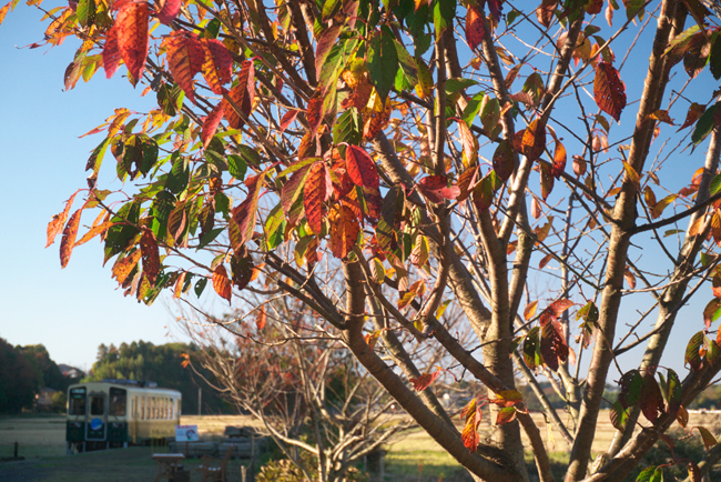 中根駅の記念樹の桜も順調に育って、晩秋には立派に色づくようになりました。
