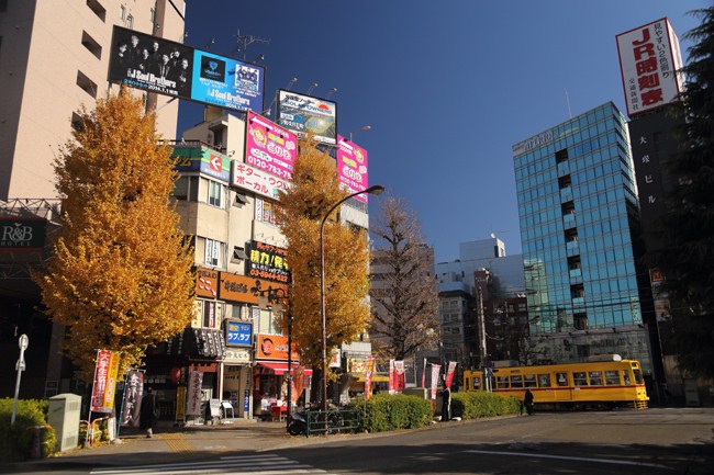 紅葉のピークは12月。この季節感がすっかり定着ましたね。都電7000形の1両(7001)が復古色になり、楽しみが増えた荒川線です。