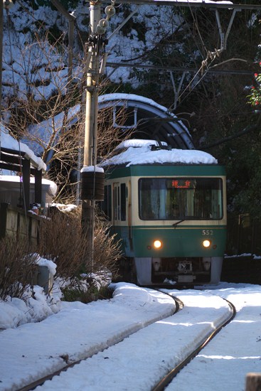 そして、隧道飛び出し。雪国のようです。この時期には珍しく、大勢のカメラマン!