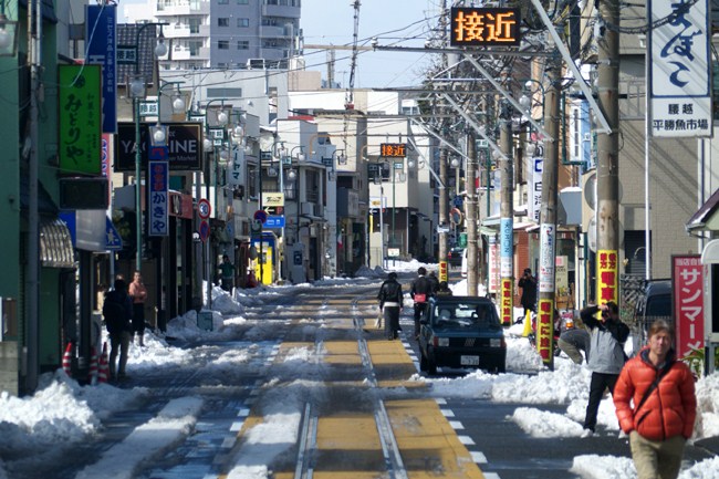 朝来たときは、道路も線路も真っ白でしたが、溶けるのも早いですね。