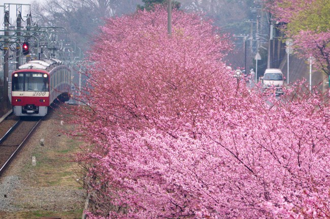 三浦海岸駅から歩いて10分の跨線橋。「春を撮ってください!」の光景が見られます。