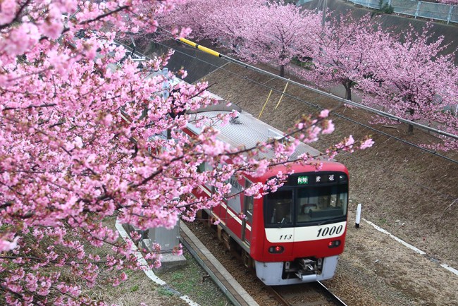 素晴らしい桜に、撮る者には嬉しい京急の赤(希に青)。