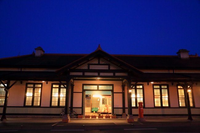 午前6時30分頃、早春の夜明け色に包まれた上熊本駅。