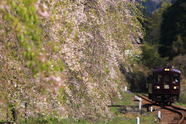 花で溢れる上神梅駅でしたが、垂れ桜は盛りを過ぎていました。桜前線はどのあたりかな‥。