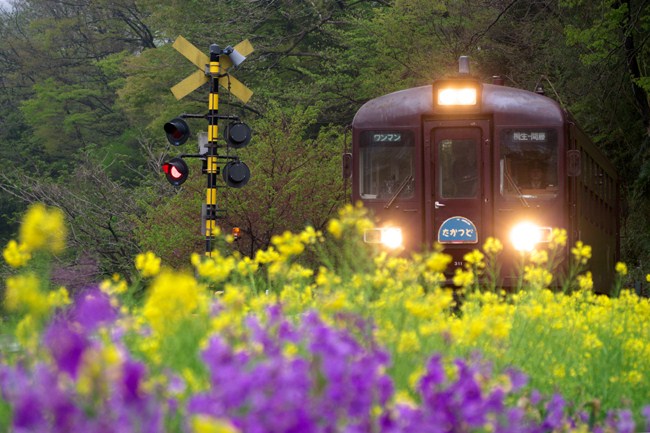 この季節、わ鉄沿線は、大根の花の紫が、いいアクセントになります。