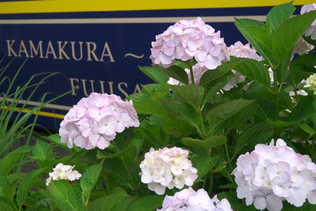 小雨まじりの沿線。あじさいも元気で勢いがありました。