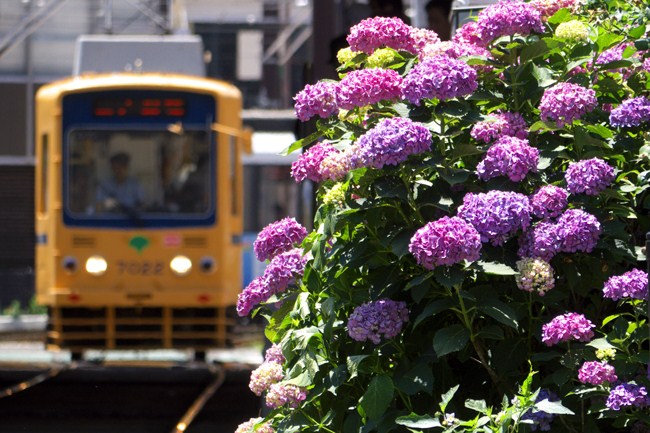 ところ変わって、荒川線。大塚駅前の「あじさい小町(美人の紫陽花)」です。今年は色付きがいいですね。