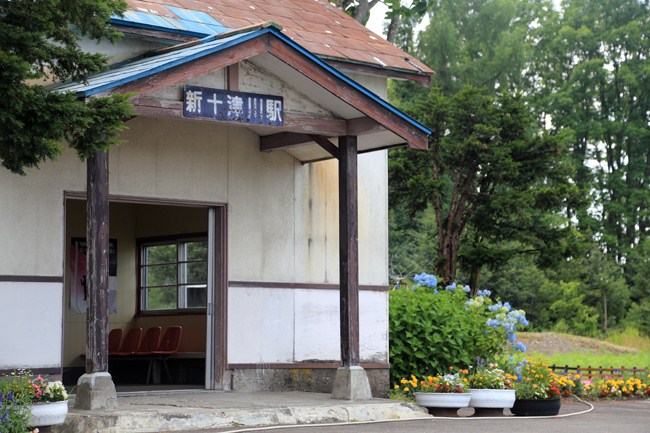 旅の始まりは、終着駅から。滝川まではほんの数キロですが、札沼線はここが終点。紫陽花がひっそりと咲いていました。