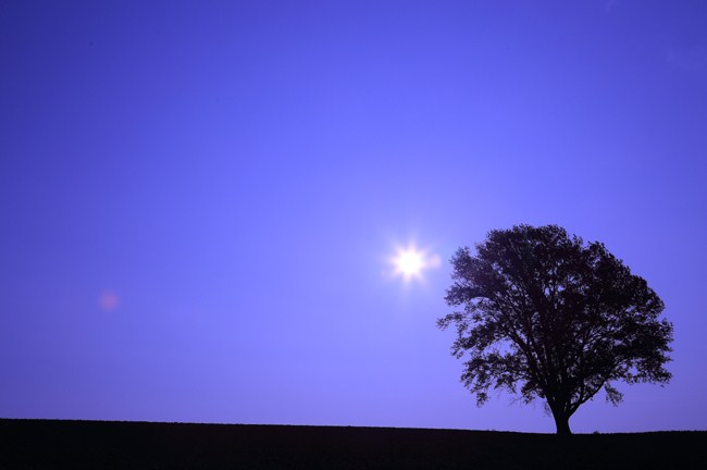 空の色の変化にワクワクしながら、哲学の木とともに、夜明けから日の出まで。