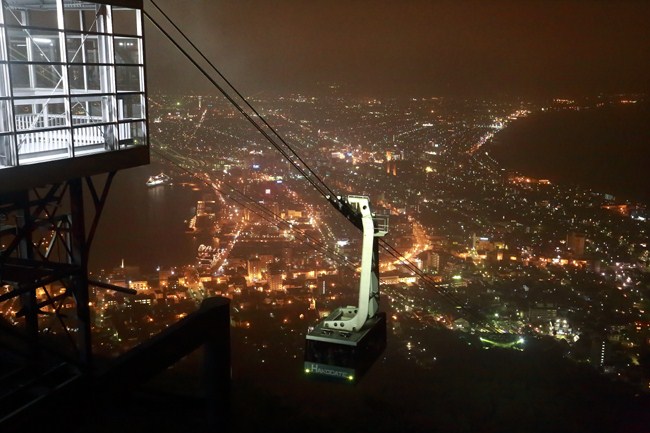 視界はやや不良でしたが、函館に来たからには、「夜景」です。適度な混雑でしたが、見る価値がある光景でした。