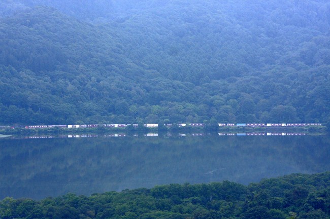北斗星は霧で撃沈でしたが、小沼湖畔をゆく貨物列車は何とか撮れました。