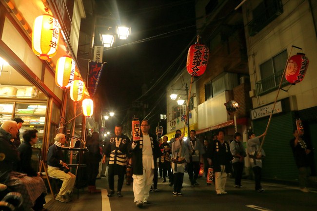待つこと30分。万灯行列が、鬼子母神参道にやってきました。