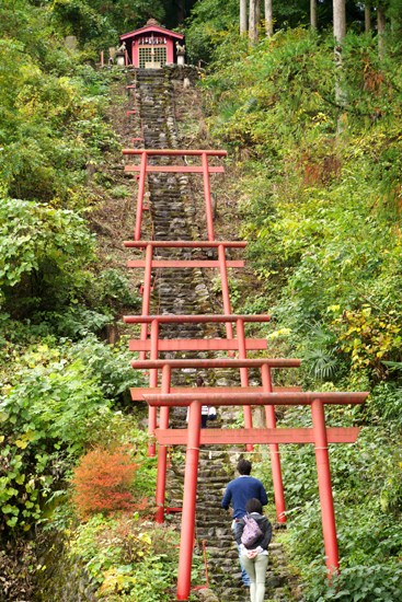 お稲荷さんへの急階段を登って、返しの蒸気の撮影場所へと向かいます。