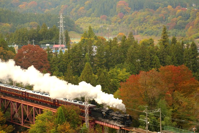 鉄橋を通過し、浦山口駅に差し掛かりました。しっかりと煙をはいています。
