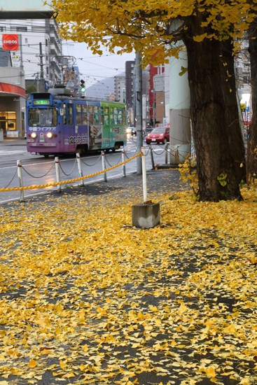 ここは、年初に白銀の中、ササラを撮ったあたり。四季の表情が楽しみな最北の路面電車です。