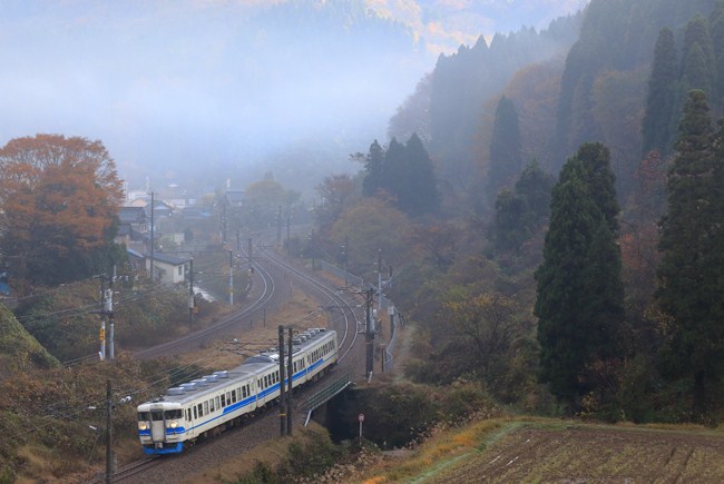 いつも撮影している北海道のローカル線と違い、幹線筋で特急銀座の北陸本線は、次々といろんな車両がやってきます。楽しく忙しい。415系デカ目にも会えました。