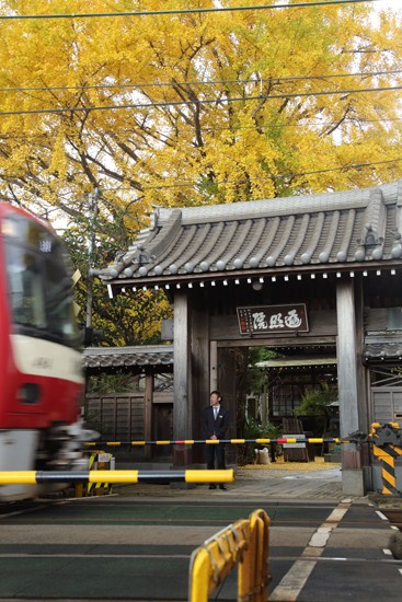 色づいたら撮ろうと思っていた、お寺の銀杏がちょうど見頃でした。この前を時速140キロでブッ飛んで行く京急快特。手ごわいです。