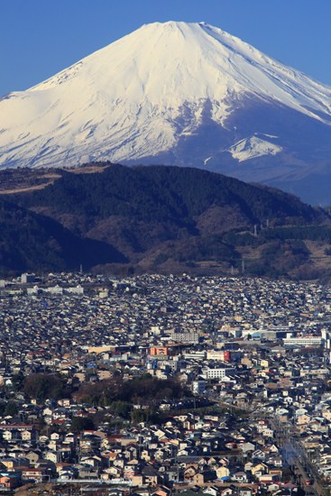 次の週末も快晴です。始発に乗って目指すは、秦野の弘法山公園展望台。でっかい富士と小さい小田急(上りLSEです。)
