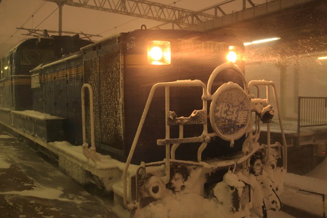 出発前、もう雪まみれ。