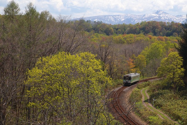 函館山線に移動。芽吹きの森と昆布岳。40系だったらなぁ‥。