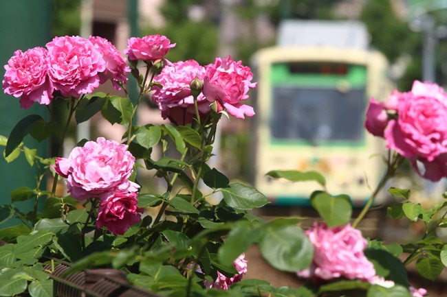 訪問したのは5月17日でしたが、沿線の薔薇はちょうど見頃。花が元気で勢いがあります。