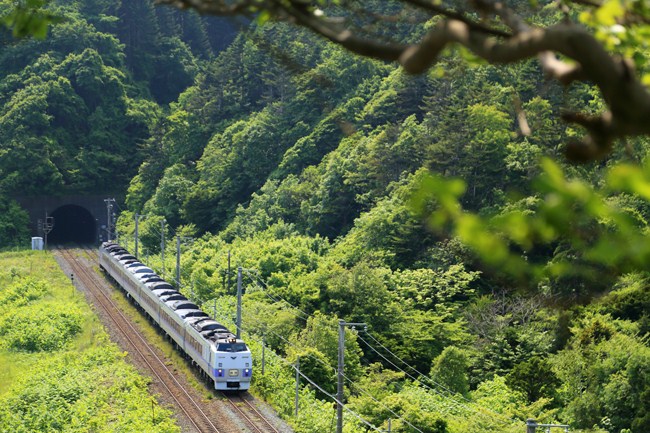 6月の北海道は、修学旅行のシーズンゆえ、臨時列車。撮る者には美味しいダブルスラントノーズ183系です。