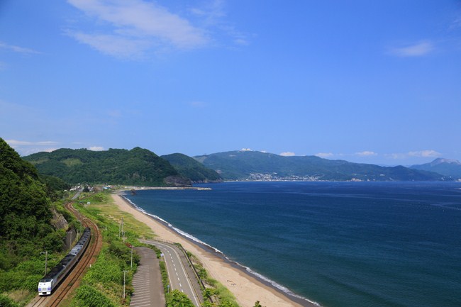 青い噴火湾、線路の先には、サミットが開催された有名高級ホテル、有珠山も望めます。長閑な景色に見えますが、この写真は、カムイチャイ史跡公園の階段の中断で前頁のカットを撮って、即座に階段を駆け上がり、公園の頂上から息をはずませながら大岸側を撮ったものです。まだまだイケます60代。